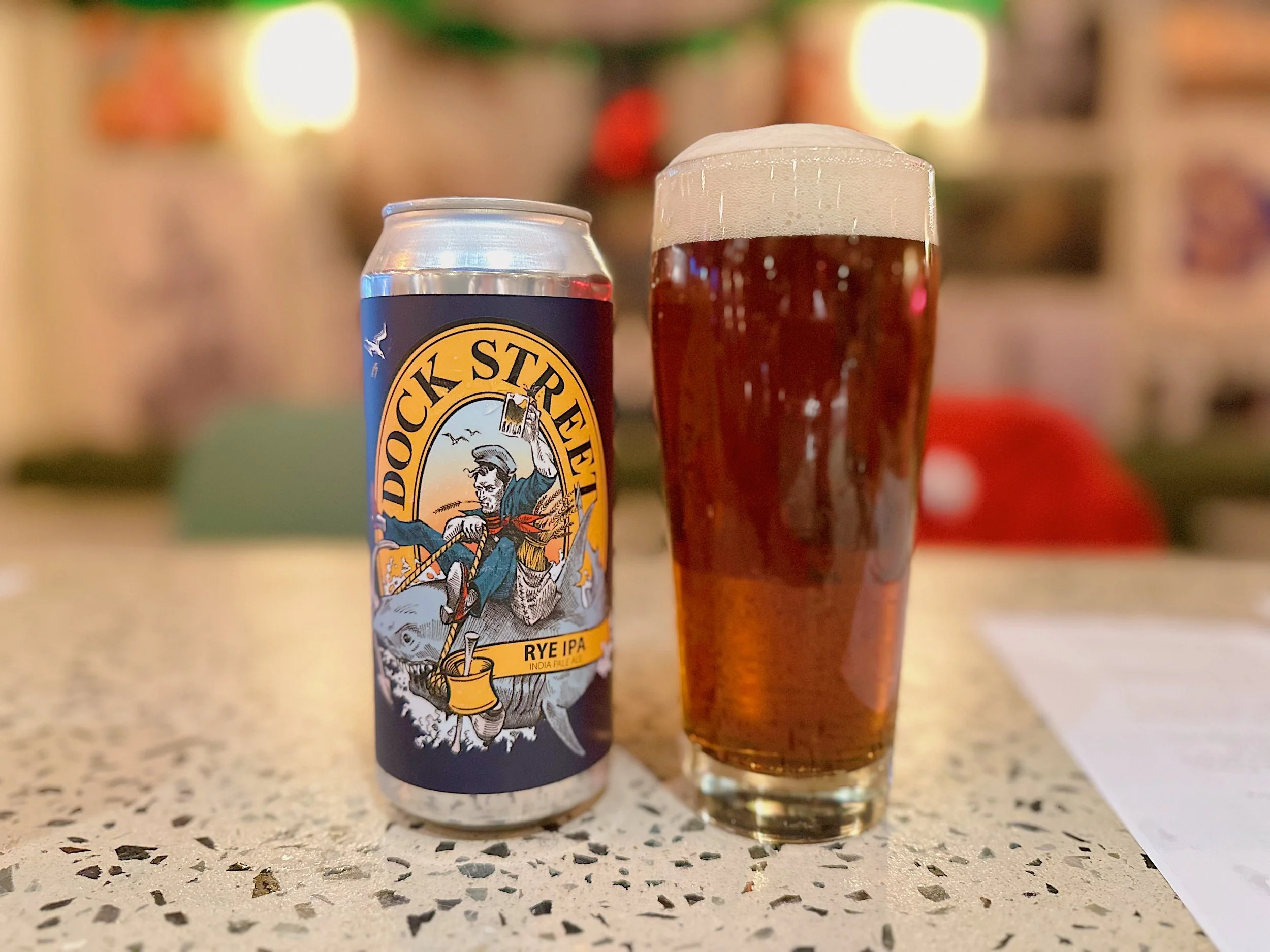 ABV 6.8% 64 IBUs | FIRST PLACE, Pennsylvania Farm Show Awards 2022 | The Dock Street West Philly Flagship. An aggressively hopped American India Pale Ale brewed with Simcoe and Amarillo hops. The use of over 20% rye malt gives this ale a unique dry and spicy character.