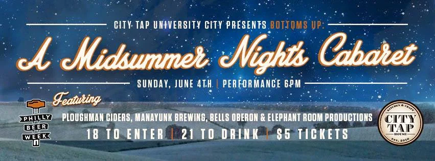 Proud to welcome our friends and collaborators at Elephant Room Productions to produce, Bottom's Up: A Midsummer Night's Cabaret. Expect a night of Shakespeare inspired performances all sourced from the bard's A Midsummer Night's dream.