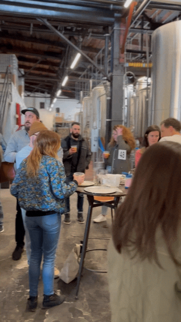 The space has a built in bar so you can order beer and cocktails to enjoy at a table or barrel as you sit in the shadow of our brewing tanks. Bring food over from the main dining room to nosh.