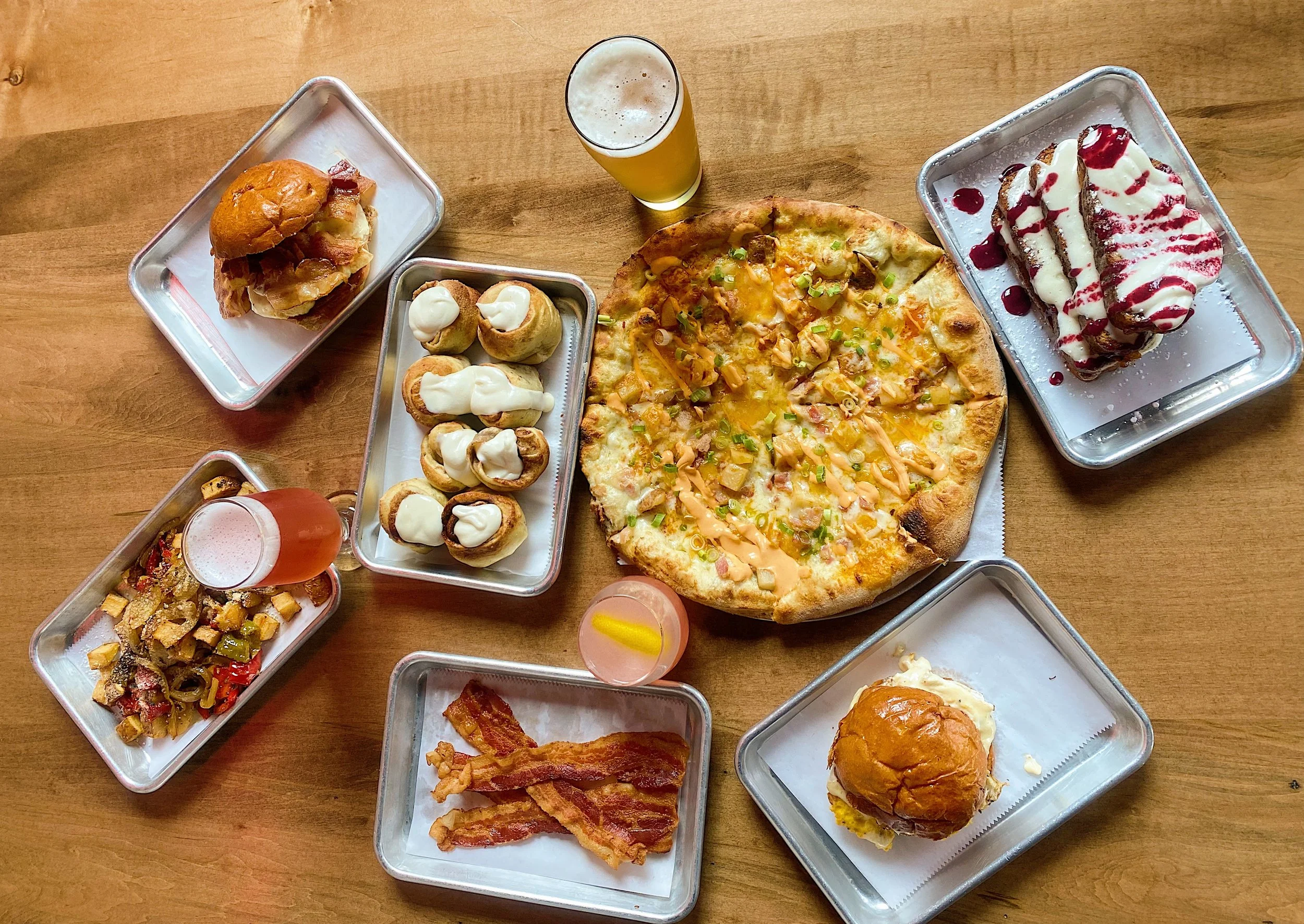 Come by on Saturdays and Sundays at 10am for our delicious brunch menu that includes Wood-Fired Cinnamon Rolls, bacon-topped Breakfast Sandwiches, Stuffed Challah French Toast, Calabrese Home Fries, and more.