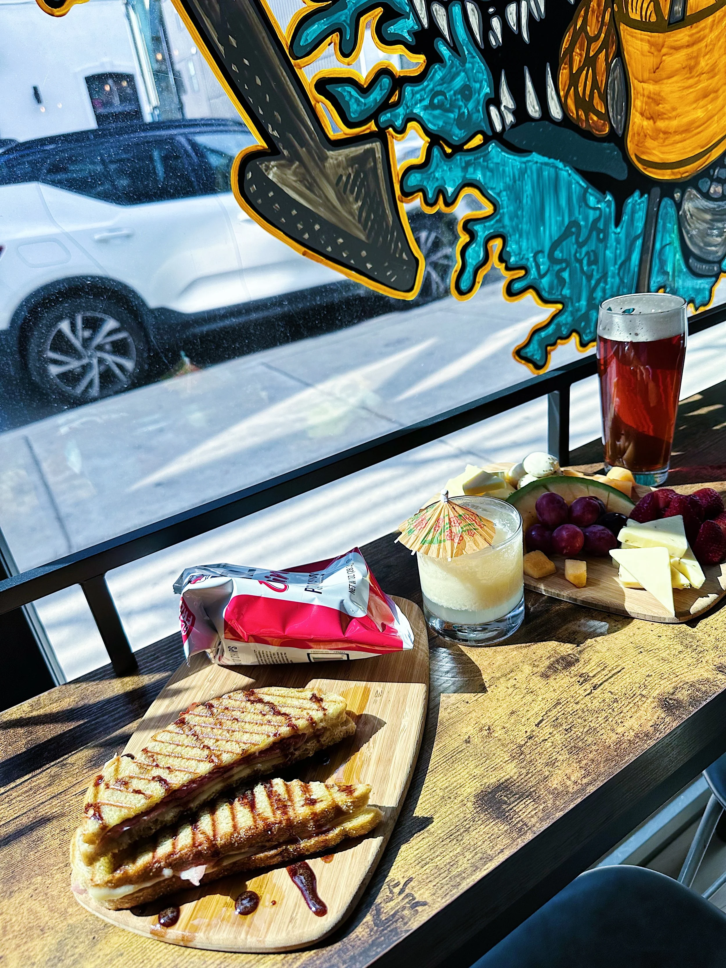 In addition to draught beer and draught wine, and an incredible, themed cocktail menu which rounds it out. The current theme is the Nineties, with cheekily named cocktails like “The Freshmaker” and “It’s a Chopper, Baby!”, all featuring local spirits, including Dock Street Spirit’s Vicio Mezcal plus mocktails like “You’re a Virgin who Can’t Drive.”